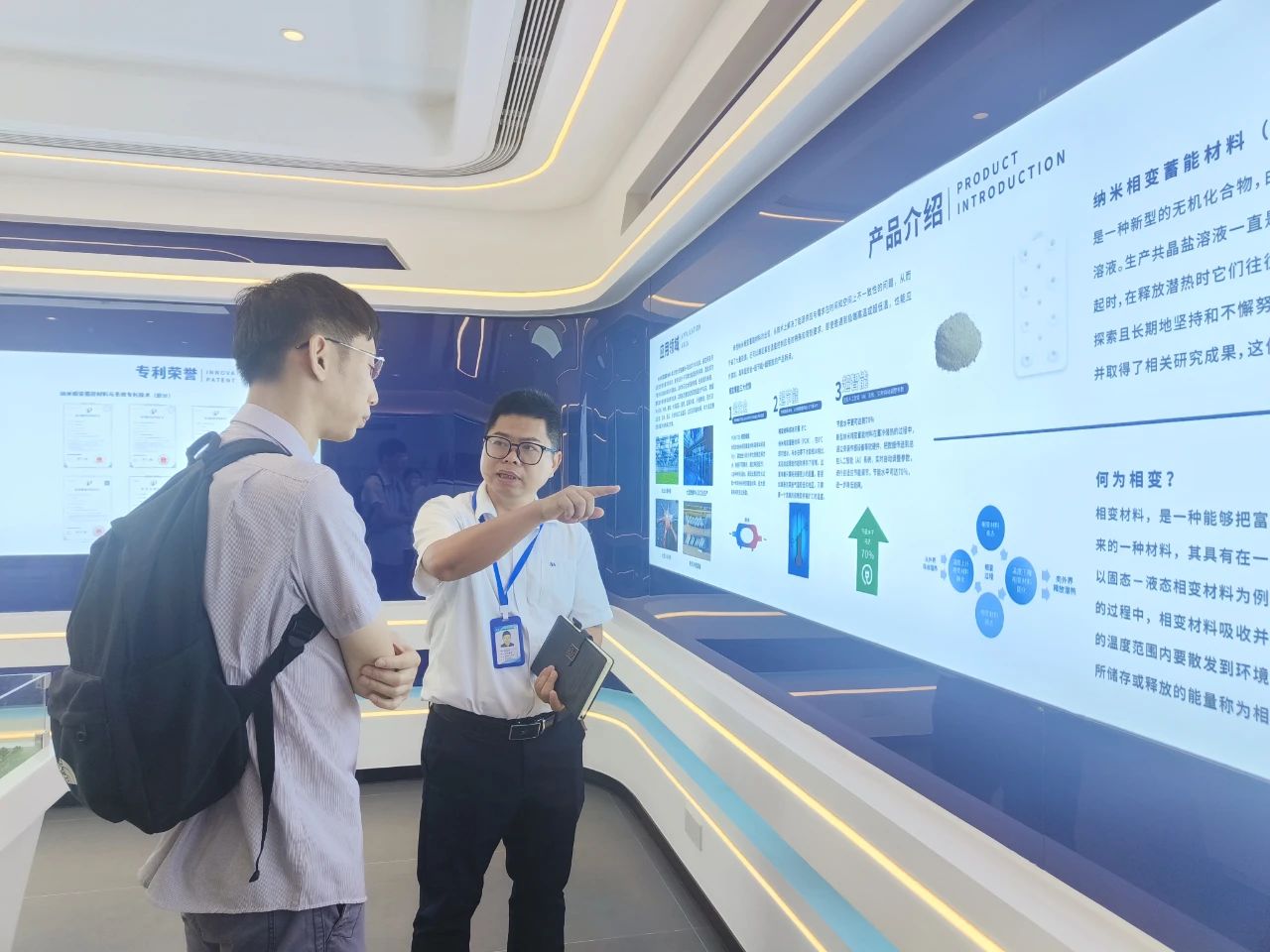 座谈会上,尊龙凯时蓄能科技总经理林锦和详细介绍了公司的蓄能技术和产品。双方就蓄能质料的化学类型、产品使用年限、温度稳定性及相变温度点等焦点问题进行了深入交流与讨论。
